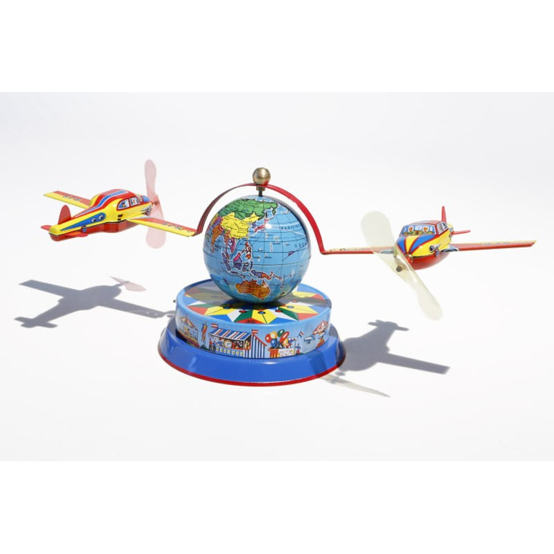 Karussell mit Globus den 2 Flugzeuge umkreisen
